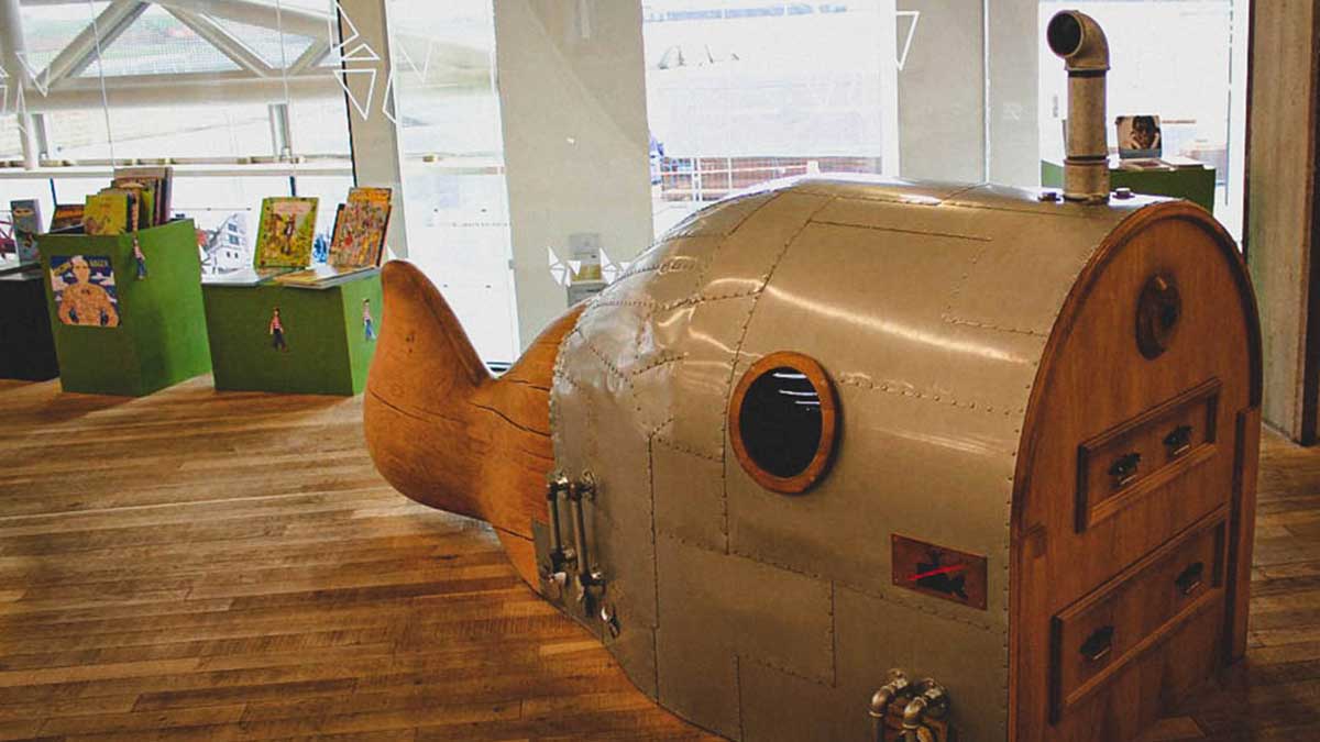 En flåde af hvide sejl er det første, man møder på børnebiblioteket i Kulturværftet, Helsingør. Sejlene rækker fra gulv til loft og deler rummet op. Bag dem lurer uhyret, Den uhyrlige Pansertorsk, en fest af modstridende elementer og fortællinger.