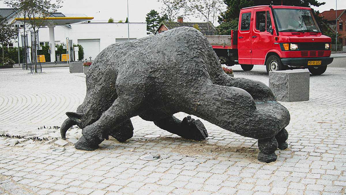 “Læne-tyr” blev opstillet i 2006 på Kropladsen foran Hvalsø Spisehus.